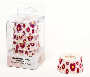 Confezione di 75 pirottini in carta da forno alimentare antiaderente, resistente fino a 220°. Comodissimi per cuocere muffin utilizzando una comune teglia da forno. Dimensioni Ø cm. 5, altezza cm. 3,2.
