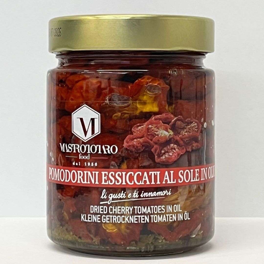 Ingredienti: Pomodorini essiccati 63%, olio extra vergine di oliva 33%, aceto di vino, basilico, prezzemolo, aglio, peperoncino, origano, sale, antiossidante: acido ascorbico. ORIGINE DEL POMODORO: ITALIA.