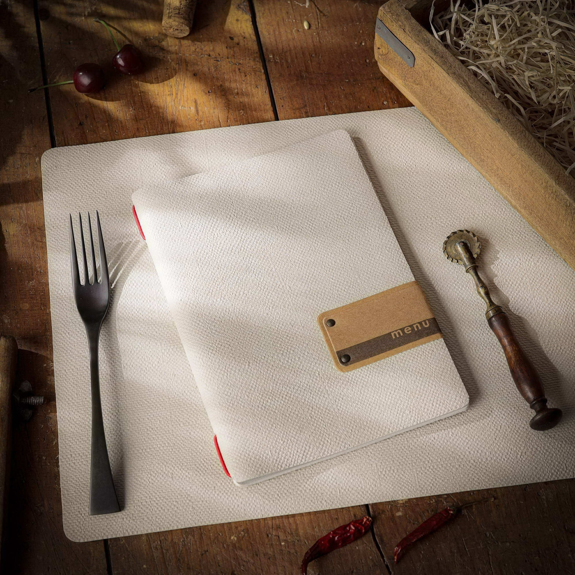 Porta menu juta avorio etichetta patch a5 solo elastico