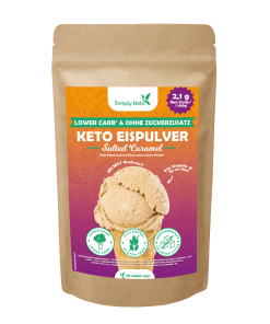 Con il nostro gelato al caramello salato in polvere, puoi creare un gelato al caramello salato davvero cremoso senza zuccheri aggiunti e senza maltitolo , che ha solo 2,1 g di carboidrati utilizzabili per 100 g di gelato preparato . Ma non è tutto, aggiungiamo un vero booster cheto alla nostra polvere di gelato cheto: polvere MCT. L’MCT viene convertito in corpi chetonici nel fegato , aumentando la tua chetosi .