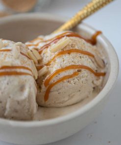 Quando si tratta di dolcezza, eliminiamo completamente l’aggiunta di zucchero e maltitolo e addolciamo invece con eritritolo e xilitolo, due sostituti naturali dello zucchero a basso contenuto di carboidrati e cheto. Entrambi i dolcificanti sono a basso contenuto di carboidrati, l’eritritolo ha 0 carboidrati utilizzabili e nessuna caloria. Tuttavia, poiché l’eritritolo da solo influenza il punto di congelamento e la formazione di cristalli nel gelato in modo che diventi duro come la roccia, aggiungiamo anche xilitolo, noto anche come zucchero di betulla, al gelato, che ha anche un indice glicemico molto basso. È così che il nostro gelato ha un sapore dolce e rimane davvero cremoso, nonostante non abbiamo zuccheri aggiunti!