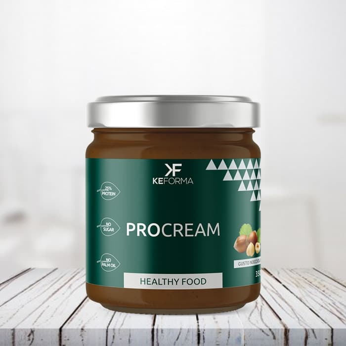 PROCREAM è una crema spalmabile a base di proteine isolate del siero del latte (WPI), nocciole e cacao. Contiene il 25% di proteine e zero zuccheri. Non contiene olio di palma. Con edulcorante.