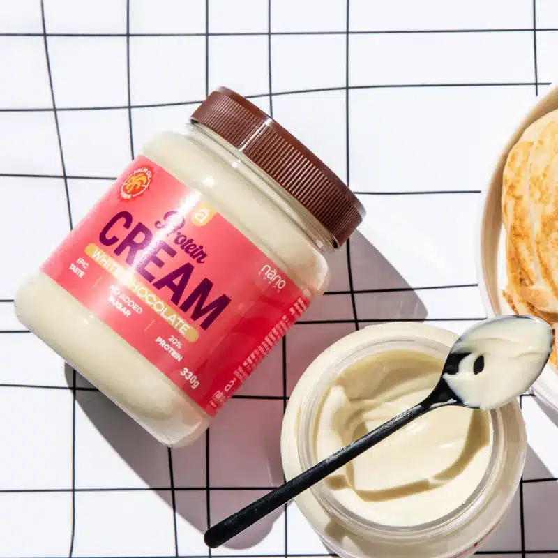 Ingredienti: Grassi e oli vegetali (girasole, karité, cocco), dolcificante (maltitolo), concentrato di proteine del siero del latte , latte scremato in polvere, emulsionante: lecitina di girasole, aroma di vaniglia.