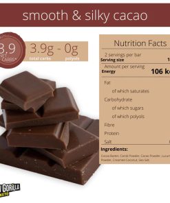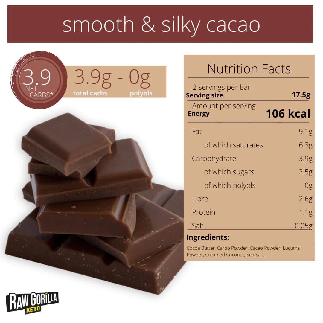 Ingredienti: Cacao Crudo, Burro Di Cacao, Carruba In Polvere, Lucuma In Polvere, Crema Di Cocco, *Sale Marino. Contiene zuccheri naturali. Cacao solido 59% minimo. *Ingredienti non biologici consentiti.