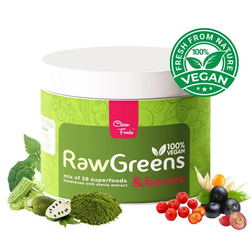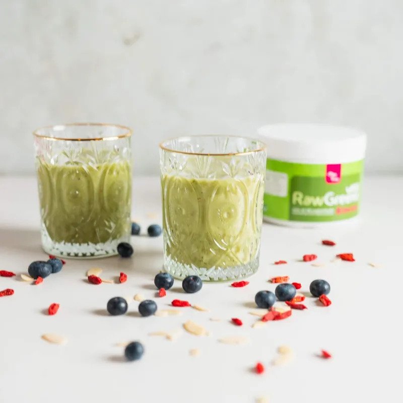 Ingredienti: RawGreens® (Spirulina, clorella, polvere di erba di grano, polvere di erba d’orzo, estratto di spinaci, estratto di erba medica, estratto di foglie di Camelia sinensis, estratto di brocoli, estratto di prezzemolo, estratto di ortica)