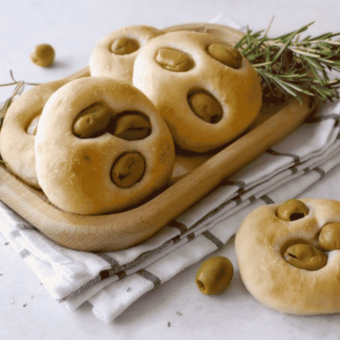 Deliziose pizzette bianche al sapore di olive: un esplosione di gusto senza sensi di colpa.