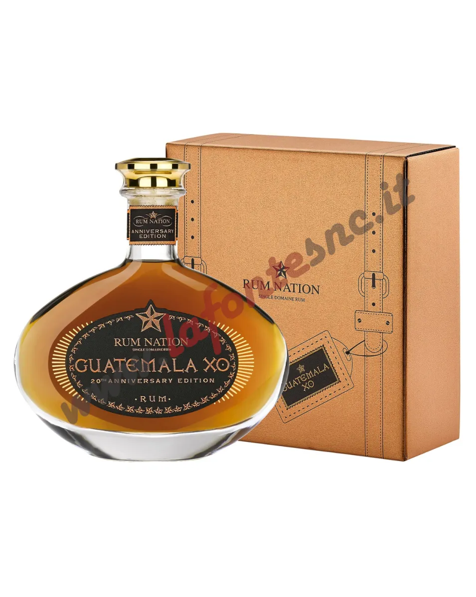 Per il ventesimo anniversario, Rum Nation ha selezionato alcune delle botti migliori e più dolci di questo prezioso rum del Guatemala. Prodotto da melassa di canna da zucchero e distillato in alambicco a colonna, viene fatto maturare per un periodo di almeno 4 anni in botti di rovere bianca ex-bourbon nel clima tropicale della regione del fiume Hondo. Il segreto della sua ricchezza è una seconda maturazione di 16 mesi in botti di sherry Oloroso e Pedro Ximenez in Italia in un clima più fresco, per aggiungere note vinose e fruttate alla sua naturale dolcezza di fragrante vaniglia e uva sultanina, e donare un ulteriore livello di complessità. Dolce e suadente, ricco di miele e frutta secca. Edizione limitata in elegante decanter, per celebrare 20 anni di rum e di scoperte in giro per il mondo.