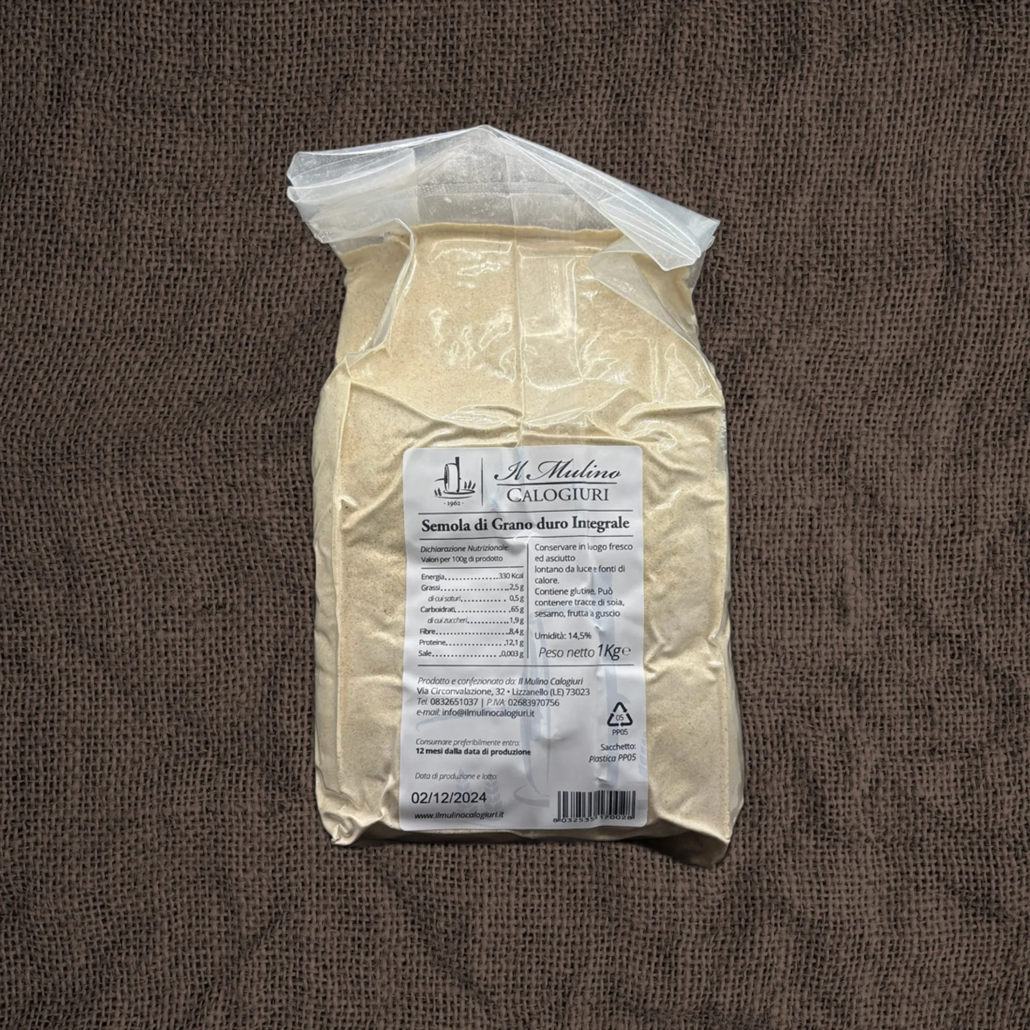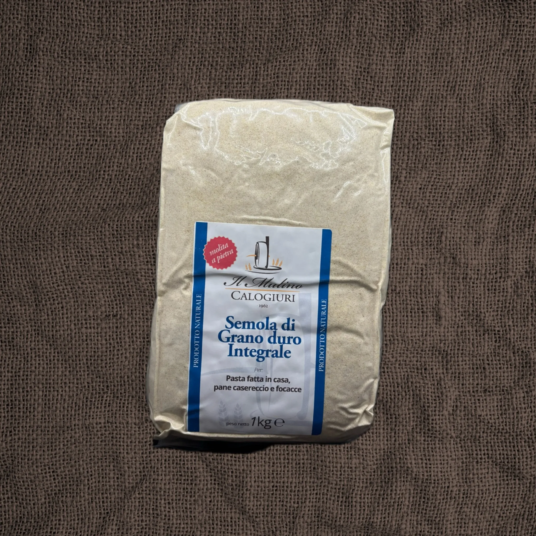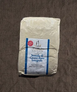 La semola integrale di grano duro di Il Mulino Calogiuri è un prodotto di alta qualità, ottenuto dalla macinazione del grano duro intero. Questo tipo di semola conserva tutte le parti del chicco, inclusi il germe e la crusca, garantendo un apporto nutrizionale completo e un sapore autentico e ricco.