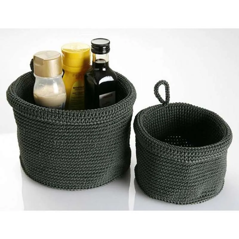 Set 2 cestini multiuso lavorazione maglia in polipropilene grigio @ cestas redondas