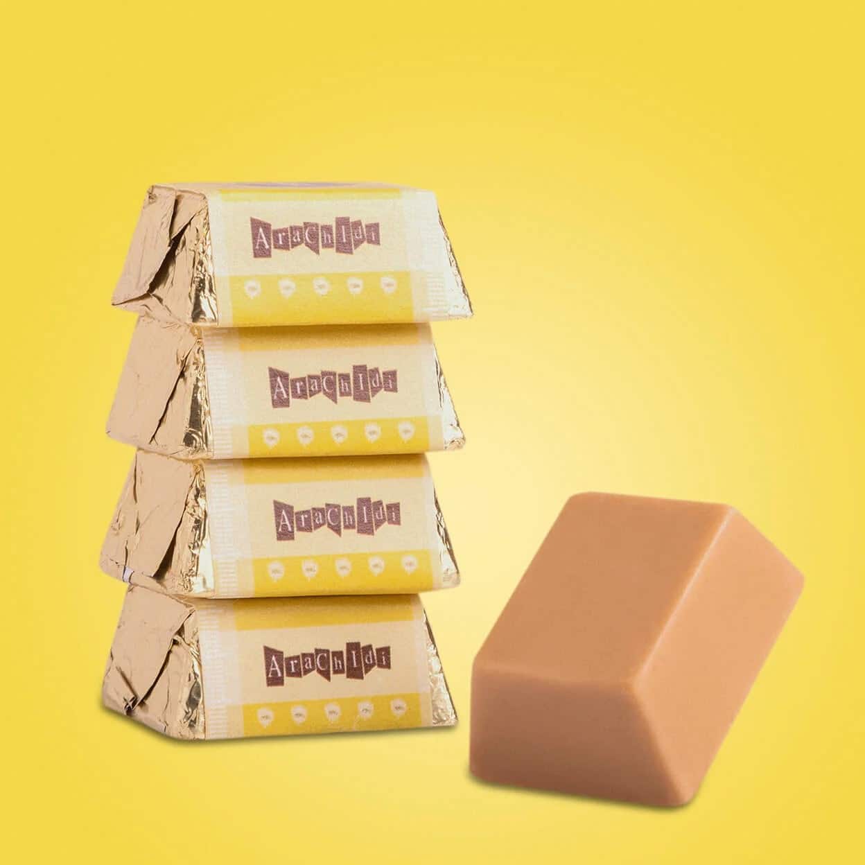 Ingredienti: cioccolato bianco con edulcorante: min.84%. Edulcorante: maltitolo, burro di cacao: min.30,6%, latte intero in polvere; Emulsionante: lecitina di soia,aroma naturale di vaniglia. Pasta di arachide: min.16%