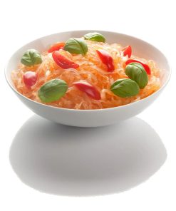 Una porzione per un piatto di pasta normale da 180g cotti si ottiene con 75g di shirataki secchi, ovvero 3 matassine. Se confrontati con gli shirataki venduti in acqua e’ importante confrontare il peso dopo la cottura dei prodotti ZenPasta con il peso sgocciolato degli altri.