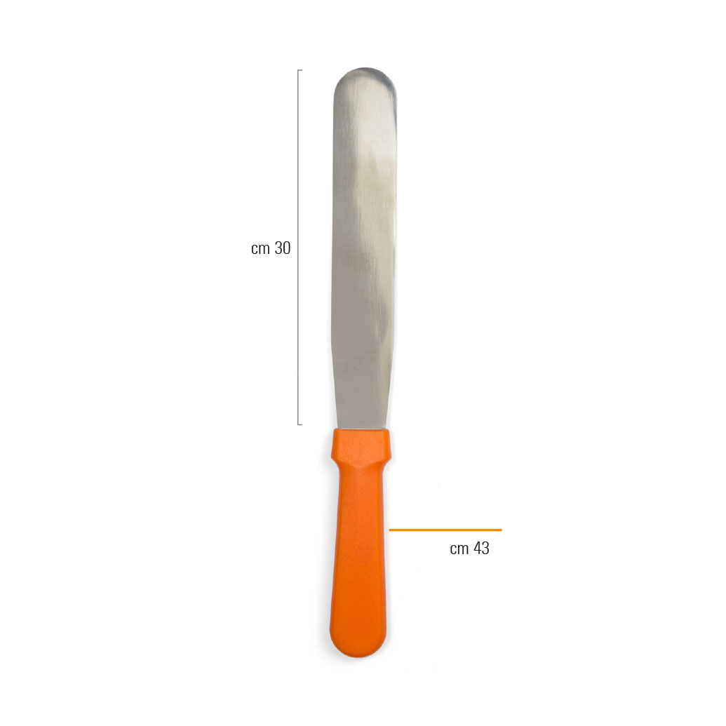 Spatole piatte in acciaio inossidabile. Adatte a spostare torte e spalmare creme e cioccolato lungo i bordi.