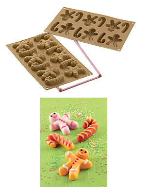 Stampo in silicone colore oro di 15 forme miste tra omino (cm. 7×6) e bastone (cm. 6×3).