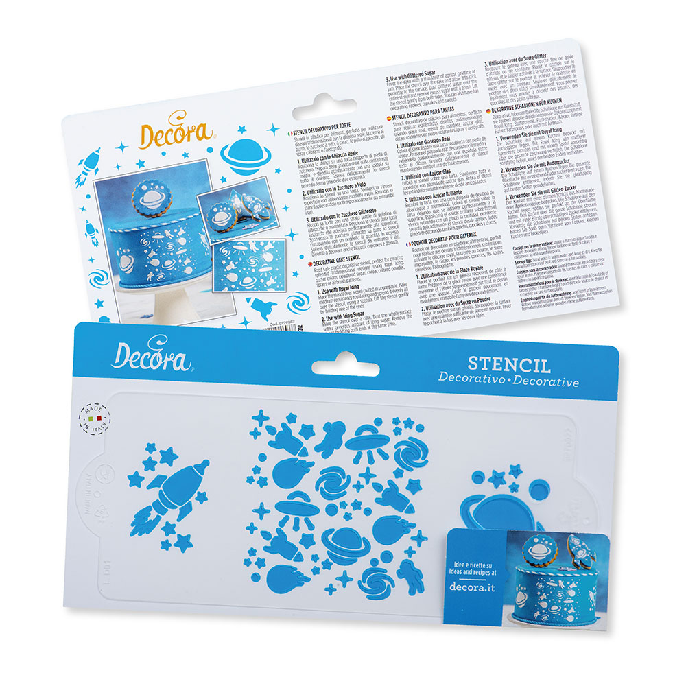 Stencil decorativo in plastica per alimenti; perfetto per realizzare splendidi disegni su torte, dolcetti e biscotti usando ghiaccia reale, crema al burro, zucchero a velo, cacao, spray colorati o aerografo.
