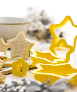 Set di 5 tagliapasta in plastica; perfetti per realizzare biscotti nelle classiche forme dei decori natalizi e sagome dolci, salate, di cioccolato ed in paste modellabili. Sovrapponendo le sagome realizzate si potrà ottenere un delizioso albero di Natale.