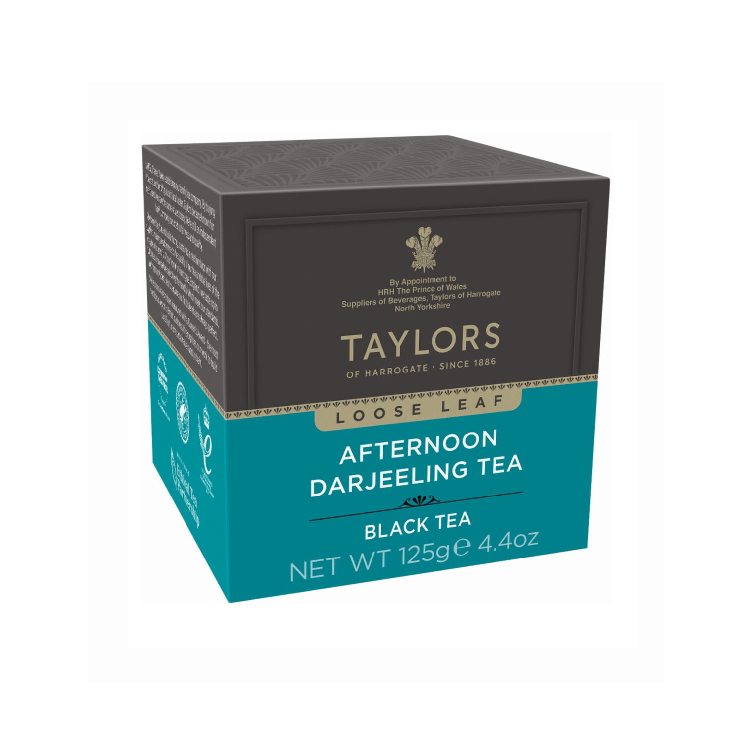 - “Afternoon Darjeeling Leaf Tea”: una lucente, fragrante miscela di tè selezionati dai giardini ai piedi dell’Himalaya al culmine della seconda stagione Flush quando il tè è al suo meglio. Solo allora si sviluppa il sottile sapore moscato; il risultato di una combinazione unica di clima nebbioso freddo, alta altitudine, terreno ricco ed accurato spennare e maneggiare. (1 x 125 grammi in foglia allentata).