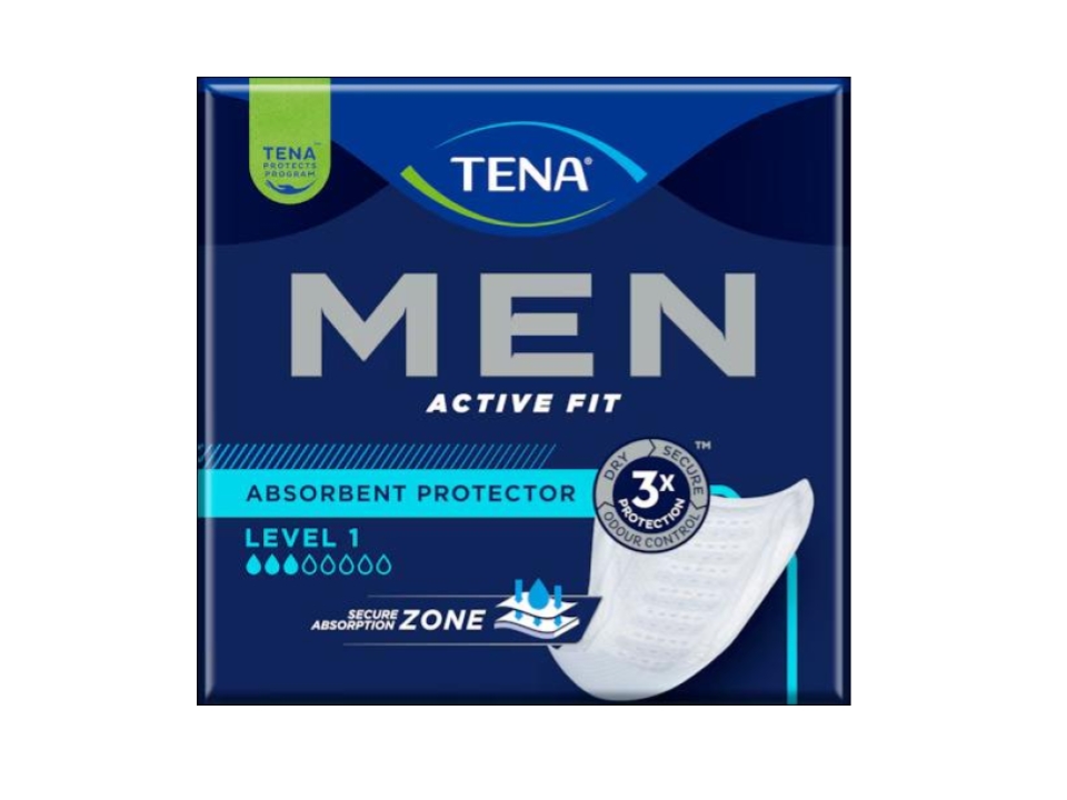 TENA Men Active Fit Livello 1 assorbe le perdite di urina leggere e protegge da odori e sensazione di bagnato sulla pelle. Sottile solo 3,5 mm, questa protezione assorbente è discreta e dotata di una zona ad elevata assorbenza che blocca i liquidi lontano dalla pelle. E’ appositamente progettato sull’anatomia maschile grazie alla morbida forma «a conchiglia». Usa la striscia adesiva per fissare l’assorbente alla tua biancheria intima, e grazie alla sua discrezione dimenticherai di averlo indossato. TENA Men Active Fit Livello 1 è confezionato singolarmente per offrire comodità e discrezione. Non lasciare che l’incontinenza influisca sul tuo stile di vita attivo: questa protezione assorbente ti farà sentire fresco e a tuo agio in ogni situazione in ufficio, in palestra o quando sei con gli amici.
