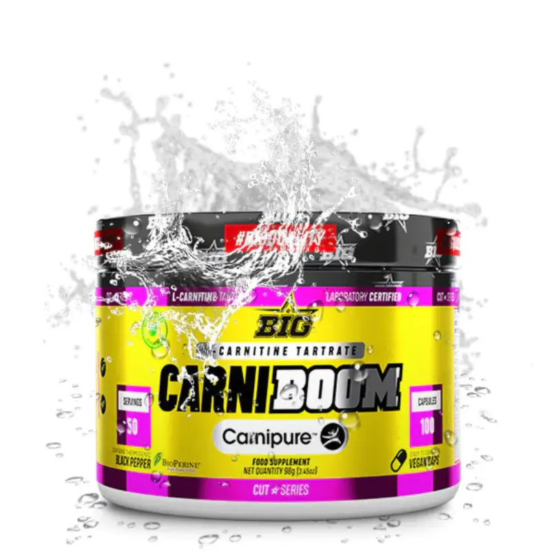 La carnitina è essenziale per il trasporto degli acidi grassi a catena lunga attraverso la membrana mitocondriale, di conseguenza il grasso viene scomposto e trasformato in energia per i tuoi allenamenti, senza provocare nervosismo o insonnia. Con il nuovo Carniboom di Big® perdere grasso non sarà più difficile.