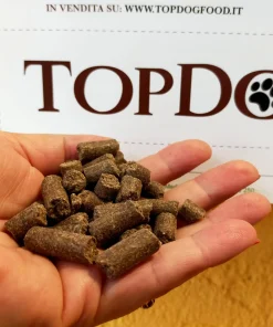 La carne muscolare contiene molti nutrienti e una quantità equilibrata di aminoacidi. Gli organi e le ossa contengono grandi quantità di vitamine e minerali in forma naturale. Gli organi sono anche ricchi di potassio, calcio, fosforo, sodio e ferro. Di conseguenza, le crocchette pressate a freddo TopDog contengono tutti i nutrienti (essenziali) quotidiani, proteine, grassi, vitamine e i minerali di cui un cane ha bisogno quotidianamente.