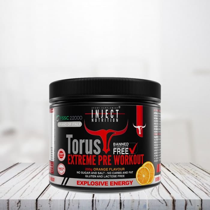 TORUS extreme pre workout di Inject Nutrition® è un integratore alimentare in polvere a base di Beta Alanina, Citrullina Malato, AAKG ed altri 11 estratti stimolanti pre-wo arricchiti con vitamine del gruppo B e D. Senza metalli pesanti, glutine e lattosio.