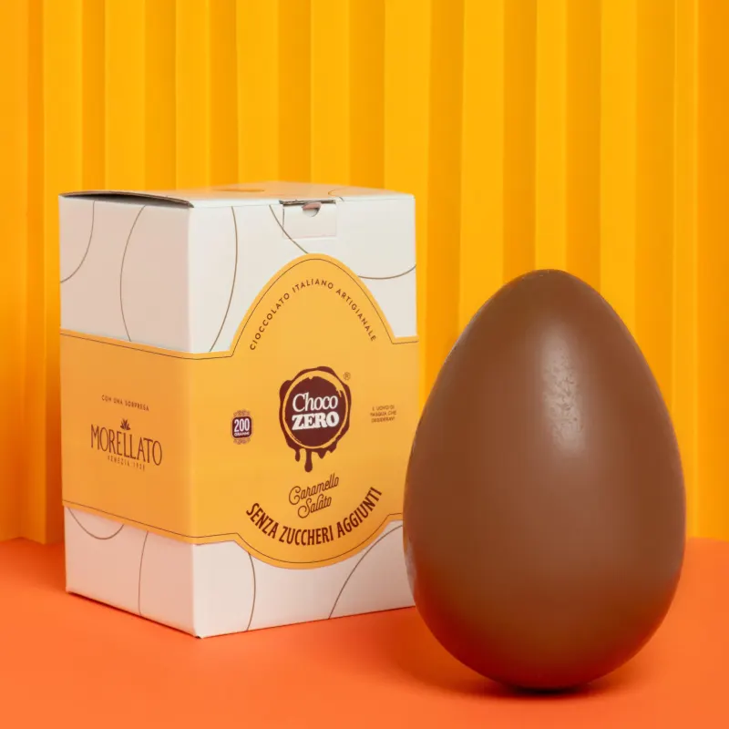 Uovo di Pasqua al caramello salato, dolce, morbido e dal gusto anche leggermente salato. Come ogni nostra creazione, è rigorosamente senza zuccheri aggiunti, per concederti un momento di golosità senza compromessi. Artigianalità italiana e ingredienti di prima scelta si fondono, e quest’anno in collaborazione con Morellato, vogliamo donarti un tocco di eleganza in più.