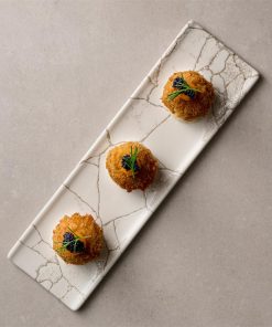 Le sue dimensioni generose lo rendono particolarmente adatto per servire una varietà di antipasti, piccole porzioni o degustazioni, ottimizzando lo spazio e facilitando il lavoro del personale. La melamina super resistente assicura che il vassoio mantenga la sua bellezza e integrità nel tempo, anche dopo un utilizzo intensivo e frequenti lavaggi in lavastoviglie.