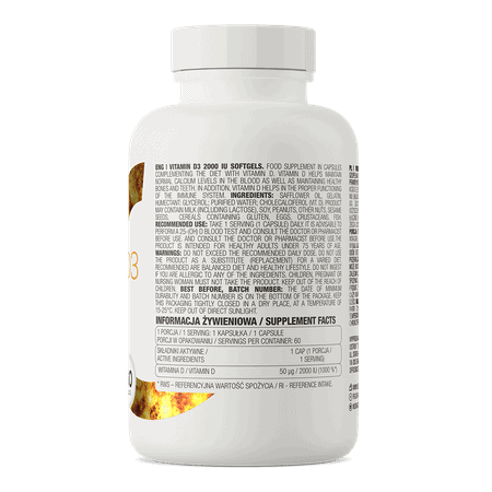 La vitamina D3 , nota anche come colecalciferolo, è un composto chimico organico steroideo, che appartiene al gruppo delle vitamine liposolubili. Pertanto, l’assimilazione dell’ingrediente è strettamente correlata alla presenza di grassi nella dieta quotidiana. La vitamina D3 è una sostanza che viene fornita all’organismo attraverso il cibo (si trova tra l’altro nel pesce di mare azzurro) e attraverso la sintesi cutanea. Tuttavia, viene immagazzinato principalmente nel tessuto adiposo e nel fegato. Oltre al colecalciferolo, la preparazione OstroVit contiene anche olio di cartamo, cioè un ingrediente che ha un effetto positivo sull’assorbimento e l’assimilazione del composto attivo e garantisce quindi un’integrazione efficace.