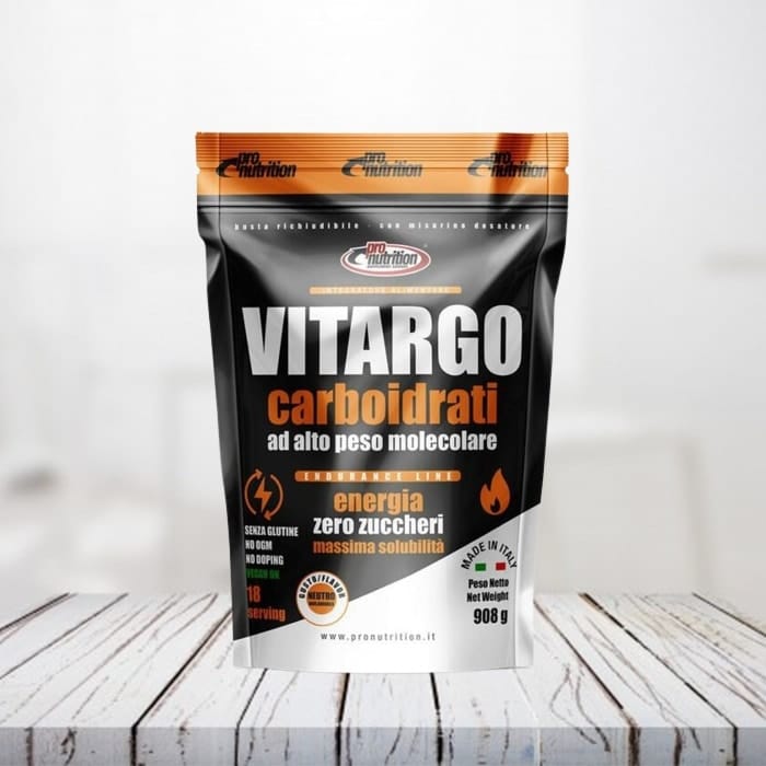 E’ un integratore energetico di Vitargo® puro al 100% senza aggiunta di aromi e conservanti. Vitargo® è un polisaccaride ad alto peso molecolare derivato dalla lavorazione del mais ed è indicato nell’integrazione della dieta dello sportivo. Esso è coperto da brevetto ed è costituito da una serie di molecole di glucosio che danno vita a catene lineari e ramificate a basso DE La sua particolare formulazione fornisce: un rapido assorbimento intestinale (soluzione ipotonica) una ottimale ricarica di glicogeno nel post allenamento (utilizzo post workout) una migliore intensità e durata della prestazione (utilizzo pre ed intra workout) Per tutti questi motivi è consigliato per chi richiede una fonte di energia pronta, costante e disponibile da potere sfruttare sia durante sforzi intensi o prolungati che per ripristinare le riserve di glicogeno utilizzate durante l’attività fisica. Il prodotto in polvere garantisce un’ottima solubilità e digeribilità.