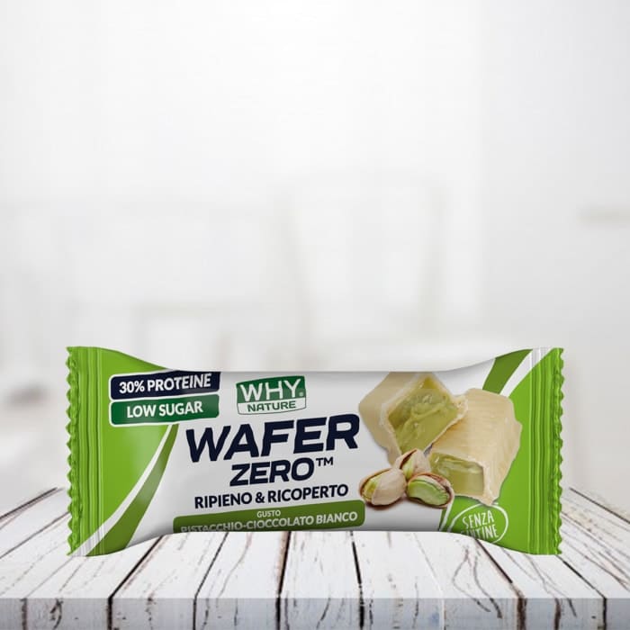 Deliziosa cialda di wafer ricoperta di cioccolato con ripieno di crema proteica. Ad alto contenuto di proteine, ricco di fibre e basso contenuto di zuccheri. Ideale per uno spuntino gustoso, ma proteico.
