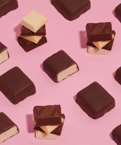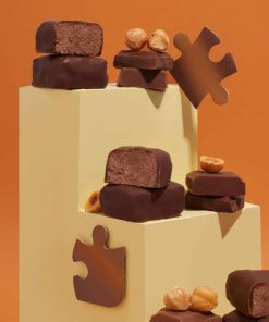 Ingredienti: Proteine del latte, cioccolato con edulcorante [pasta di cacao, oligofruttosio, cacao magro in polvere, grasso del latte, emulsionante: lecitina di girasole (E322), aroma naturale di vaniglia, edulcorante: glicosidi steviolici (E960a)], burro di cacao, collagene idrolizzato, pasta di nocciola, frutto-oligosaccaridi, olio di cocco, edulcoranti [eritritolo (E960), glicosidi steviolici (E960a)], latte intero in polvere, cacao in polvere, emulsionante: lecitina di girasole (E322), vanillina, edulcorante: sucralosio (E955).