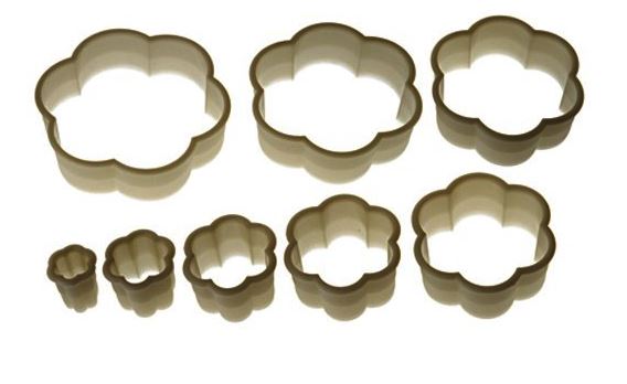 Set di 8 tagliapasta forma fiori per realizzare biscottini e decorazioni utilizzando pasta di zucchero, cioccolato plastico e glasse, misure cm. 3.5 – 4.5 – 6 – 7 – 8 – 9.5 – 10.5 – 12, altezza cm. 2,5. Prodotto Silikomart della linea Wonder Cakes firmata da Renato Ardovino.